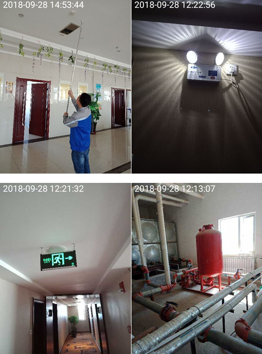 2018年9月28日,甘肅安卓工程技術有限公司消防事業部技術人員劉工、麻工前往金昌市大漠金酒店進行消防設施維保,對火災自動報警系統、室內消火栓給水系統、應急照明和疏散指示系統、建筑滅火器、防火分隔等設施進行了檢測,對檢測發現的問題進行匯總,并向甲方出具了消防設施設備檢測整改意見書,確保消防設施器材完好有效。