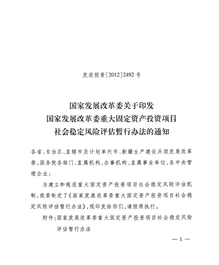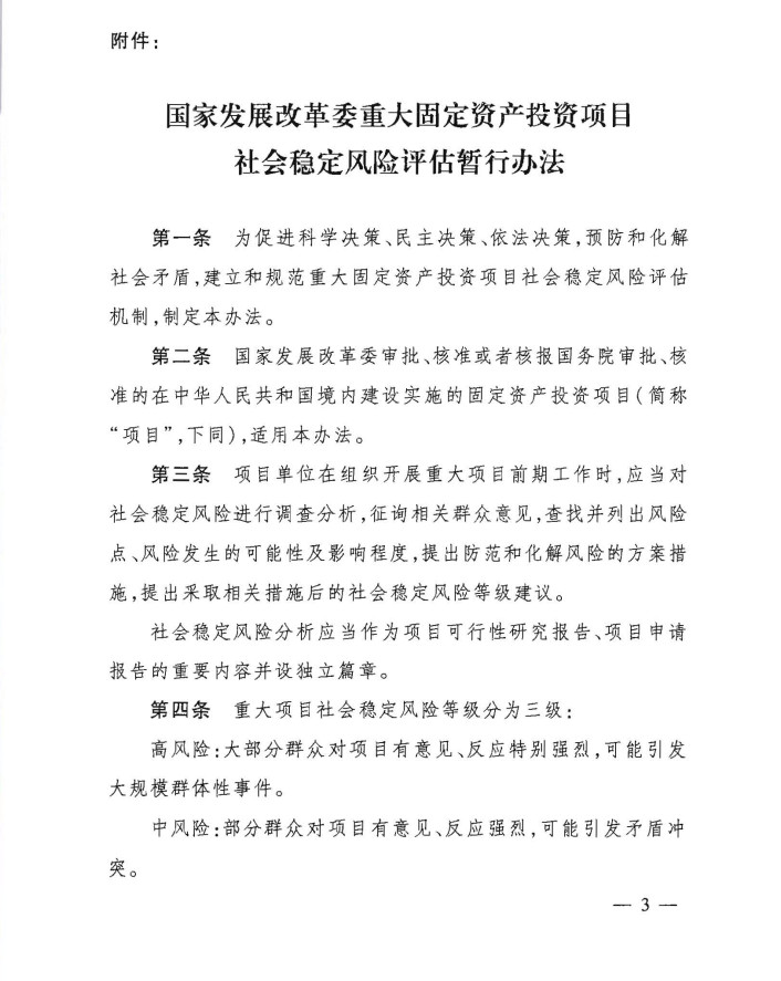 【重要通知】國家發展改革委關于印發國家發展改革委重大固定資產投資項目社會穩定風險評估暫行辦法的通知