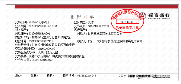 地震無情,安卓有情!甘肅安卓工程技術(shù)有限公司得知災(zāi)情信息后,心系災(zāi)區(qū)群眾,第一時間響應(yīng)臨夏州委、州政府號召,通過積石山保安族東鄉(xiāng)族撒拉族自治縣紅十字會向甘肅省臨夏州積石山縣捐贈資金6萬元,用于積石山縣災(zāi)區(qū)緊急救援、受災(zāi)困難群眾生活保障和災(zāi)后重建工作。同時緊急采購一批救災(zāi)物資,捐贈總價值5萬元的物品,并以最快速度運往積石山,及時緩解災(zāi)后群眾物資需求,幫助災(zāi)區(qū)人民共克時艱、重建家園。