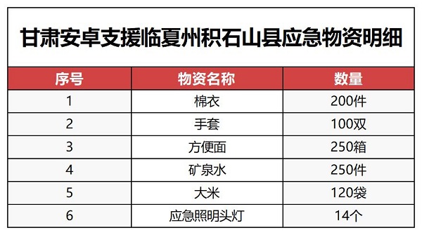 同心協(xié)力、共渡難關(guān)!甘肅安卓黨支部和甘肅安卓基金會迅速行動起來,組織人員調(diào)遣4部賑災(zāi)車輛深入災(zāi)區(qū),親自進行物資救援。這份愛心將承載著甘肅安卓全體員工對災(zāi)區(qū)的誠摯祝福,給受災(zāi)同胞送去溫暖和希望!