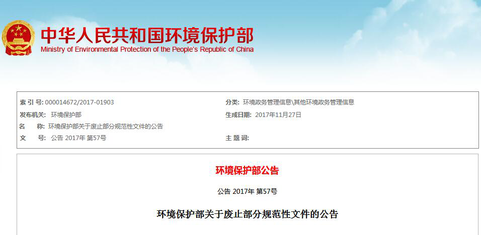 經過清理,我部決定廢止21件環境保護規范性文件。現予以公布,決定廢止的規范性文件自公布之日起廢止。